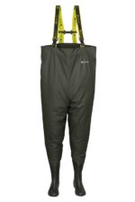 Botas de peito feitas de um tecido de poliéster de alta qualidade. Uma tecnologia moderna de emendas soldadas garante que elas sejam completamente à prova d’água e que tenham alta resistência a danos.