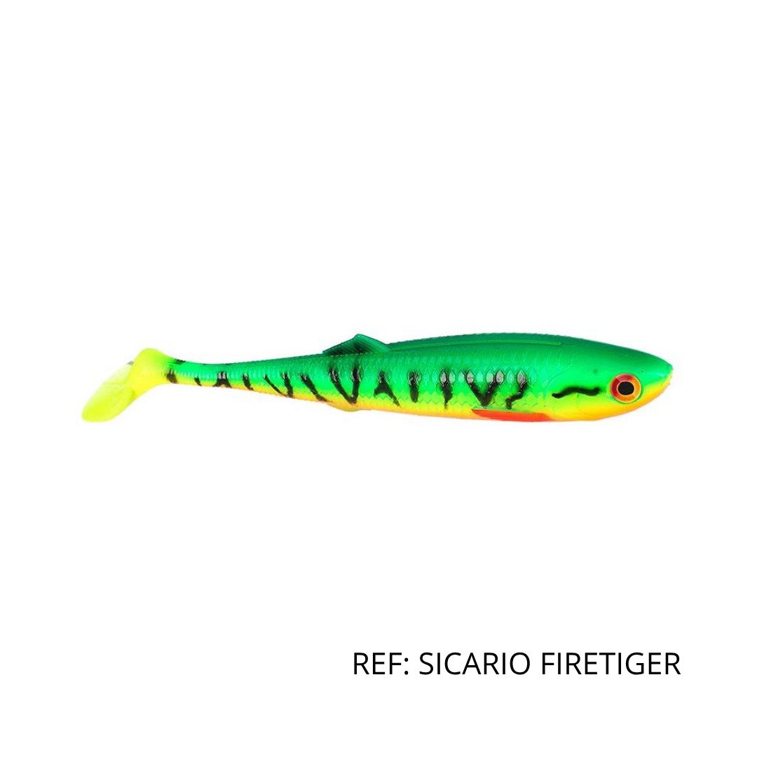 O corpo alongado e segmentado do Sicario oferece uma ação de natação natural e ondulante, com vibrações fortes que despertam o instinto de ataque dos predadores, mesmo em águas difíceis ou muito pressionadas. A sua versatilidade permite diferentes tipos de montagem, como jig head, Texas rig, Carolina rig ou montagens offset, tornando-o uma excelente escolha tanto para pesca em zonas com obstáculos como em águas abertas.
