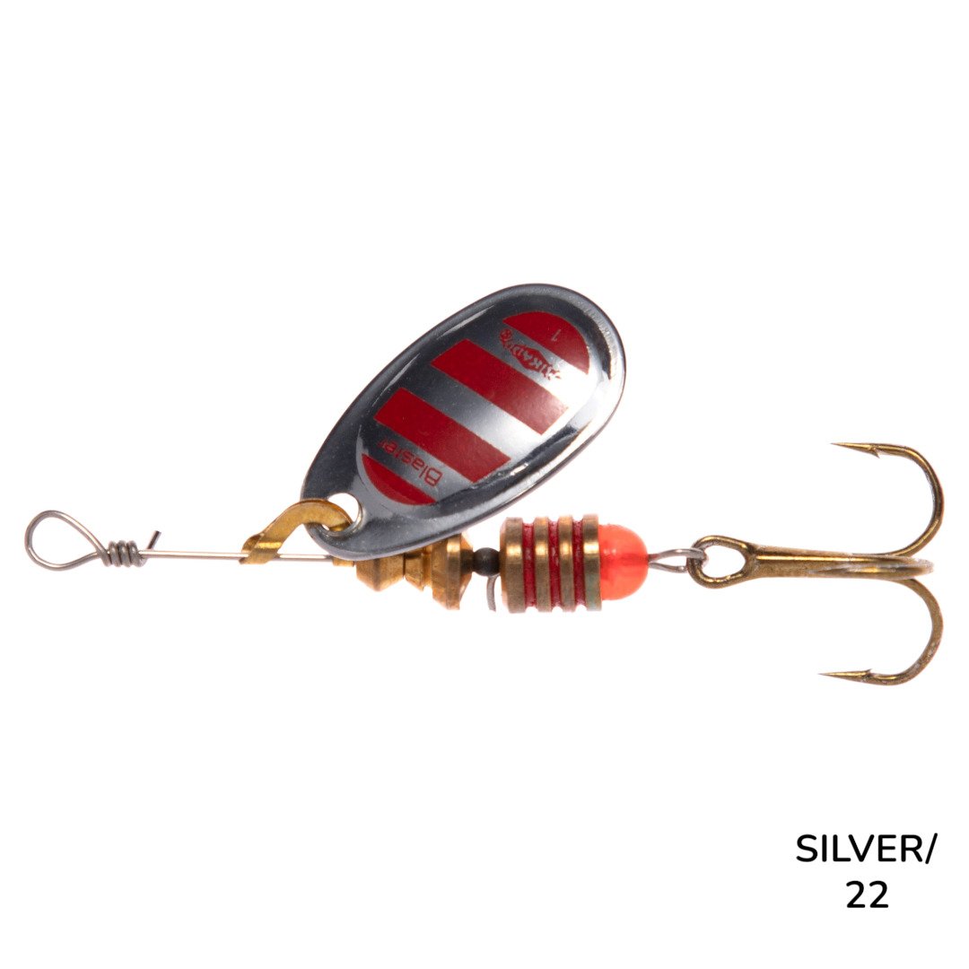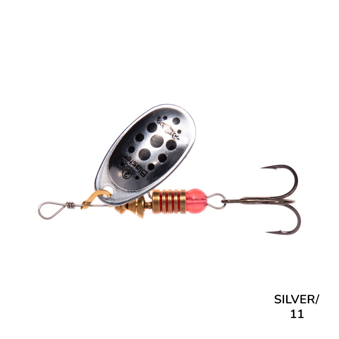 Medalhas blaster têm lâmina de largura média-larga. Nesse tipo de construção, gira em torno de 45 graus, tornando-se uma das iscas mais versáteis . Perfeito para pescar em rios e águas paradas.